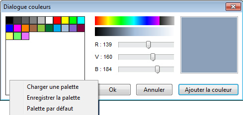 Les deux composants peuvent être utilisés conjointement pour se confectionner un dialogue de couleurs personnalisé.