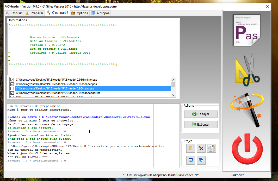 PASHeader - Projet du défi Pascal/Delphi 2016