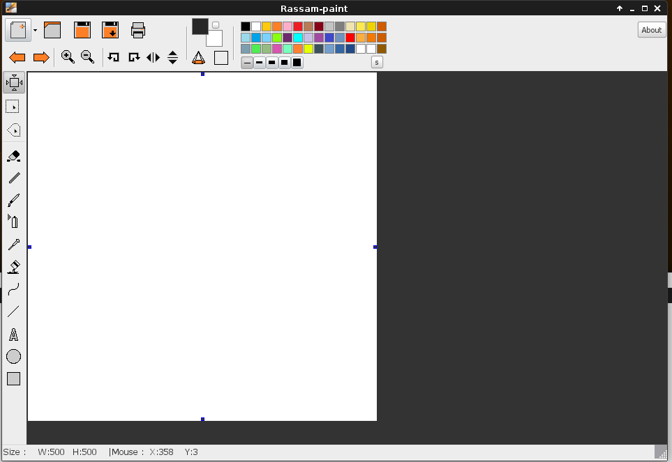 Rassam-paint est un simple logiciel de dessin pour Linux, basé sur la bibliothèque Cairo.