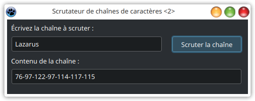 - un scrutateur de chaînes de caractères, affichant le numéro d'ordre des caractères (image 4).