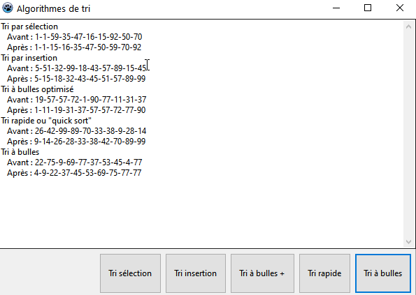 - le tri à bulles ;