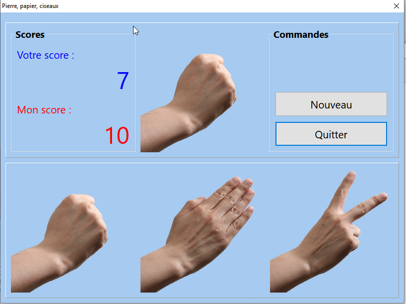 L'application d'exemple est le célèbre jeu Pierre, papiers, cideaux.