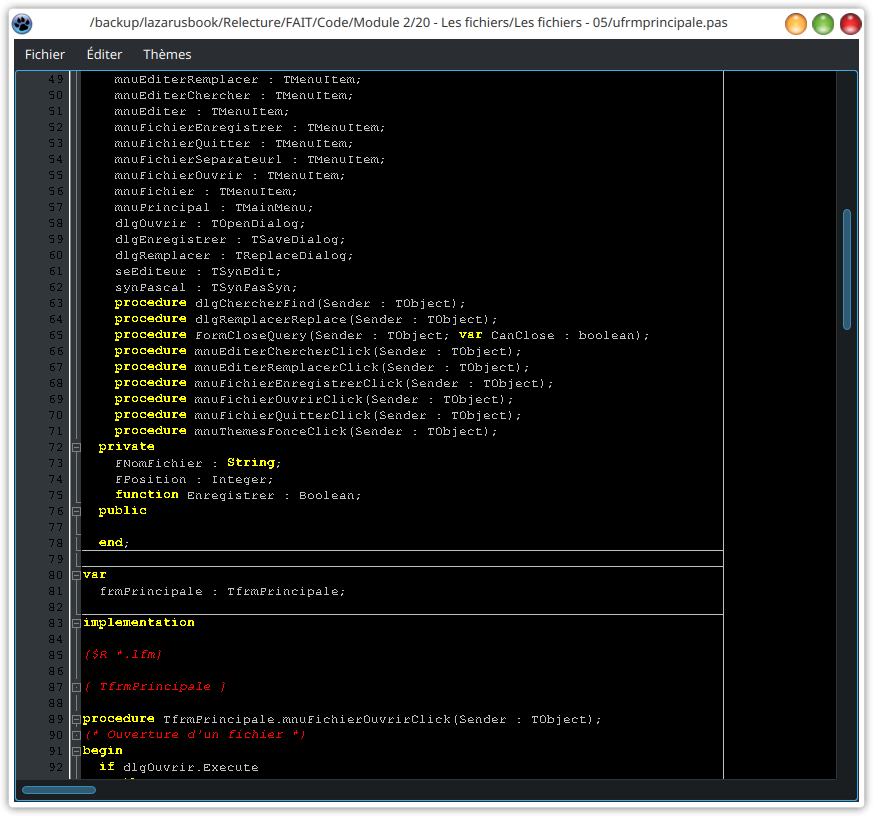 Code source extrait du livre J'apprends à programmer en Pascal Objet avec l'environnement de développement Lazarus.