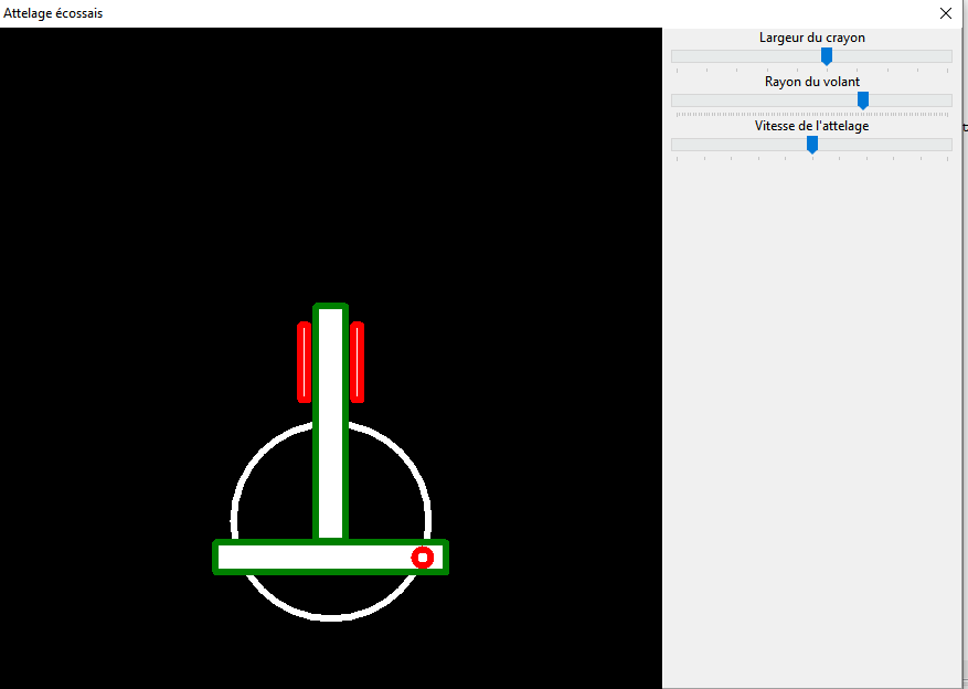 L'application d'exemple est la réalisation de l'animation d'un attelage écossais, c'est-à-dire un mécanisme roratif doté d'un ergot qui permet de transformer un mouvement circulaire en mouvement rectiligne.